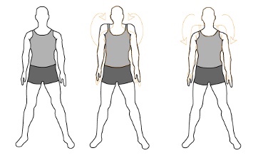 Mantente de pie, mira hacia delante, mantén la cabeza en alto y acerca la oreja al hombro sucesivamente.