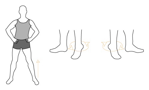 Mantén las piernas a la altura de los hombros, los brazos extiéndelos a lo largo del tronco y realiza la rotación hacia adelante y atrás.
